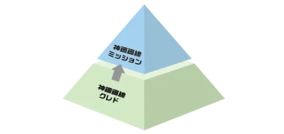 当社の理念体系は、社会の一員として果たすべき役割を示した「神鋼鋼線ミッション」、すべての従業員・役員で共有する価値観と行動を示した「神鋼鋼線クレド」によって構成されます。
